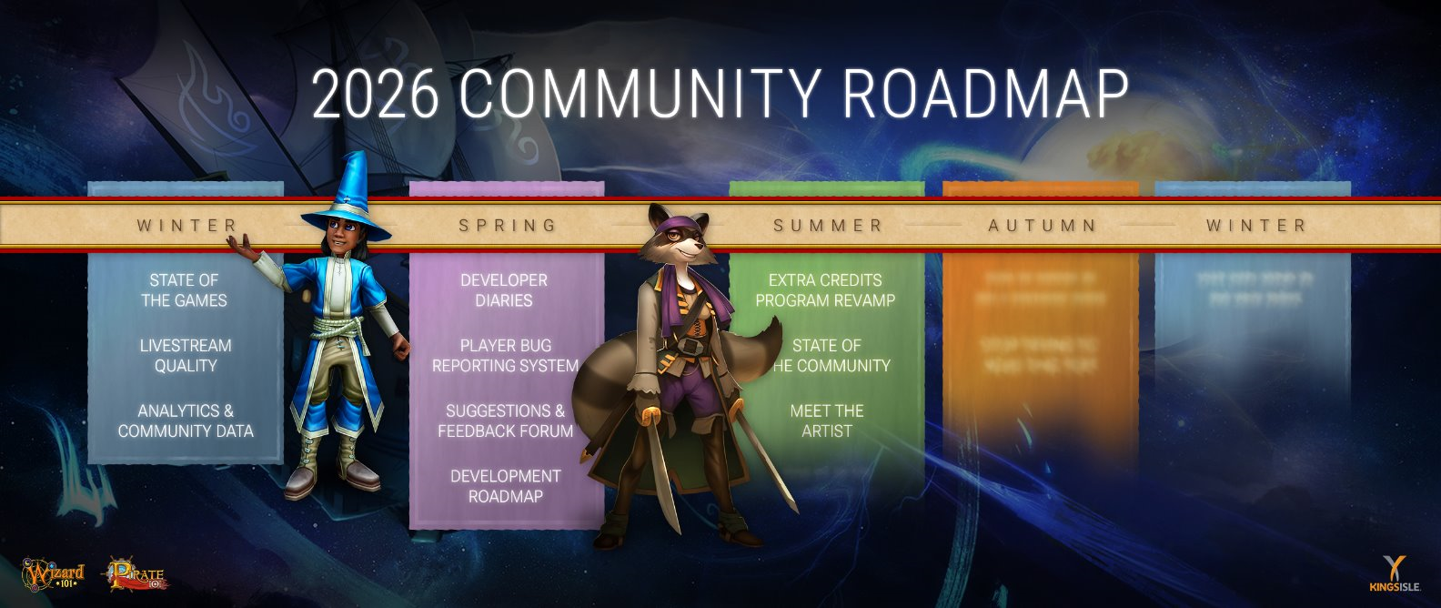 In this month's KI Live, we outlined our 2026 Community roadmap, covering recent progress and upcoming features, including a player bug tracking system, a suggestions forum, and Discord updates. A blog post will follow in the coming weeks to introduce these additions, starting with Pirate101.